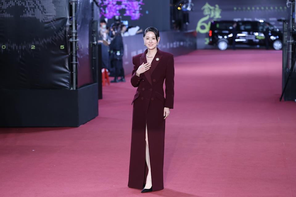 體態維持得很好,完全能撐起不對稱印花的旗袍,在金鐘60一甲子穿旗袍走紅毯別具意義!