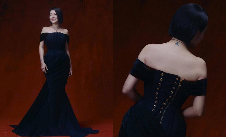 小S將這段時間的思念、疼痛與勇氣,都注入到這套黑色訂製禮服。