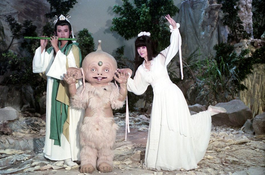 凍齡女神 潘迎紫與《浴火鳳凰》的神獸「嘟嘟」以及《靈山神劍》的「靈芝草人」合體登場,讓觀眾瞬間穿越回童年。