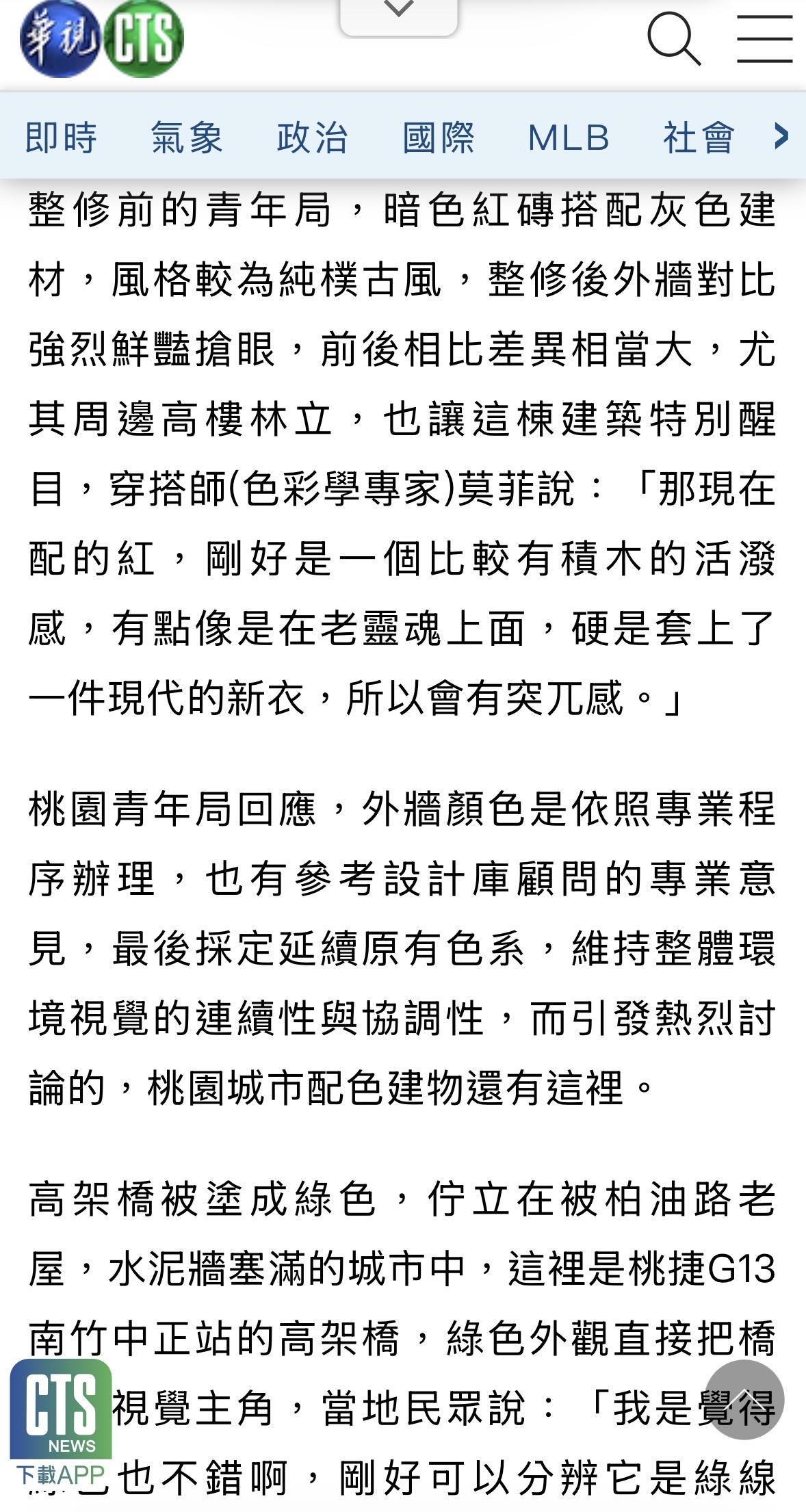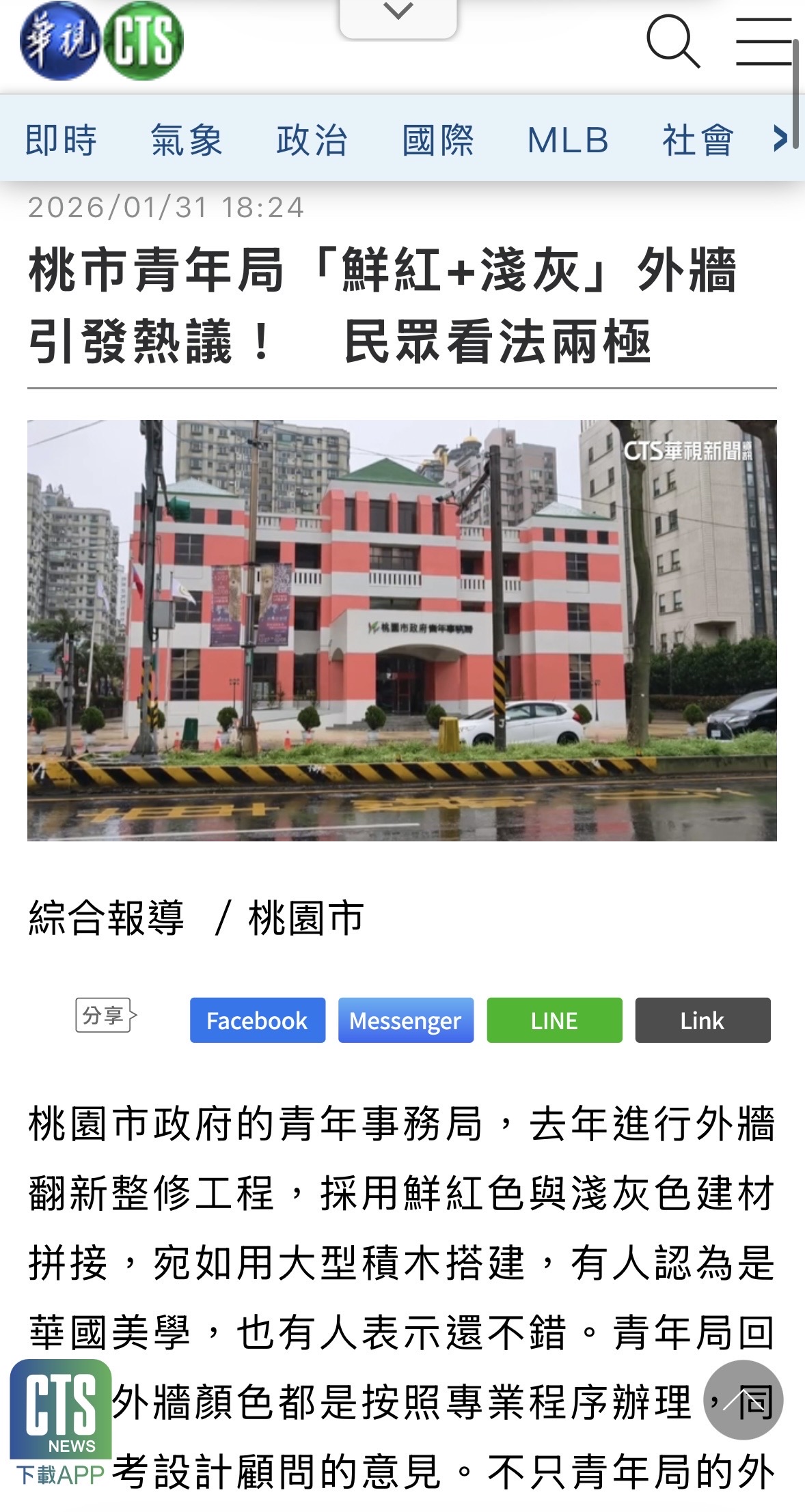 針對桃市青年局 鮮紅+淺灰 外牆的片段文字報導